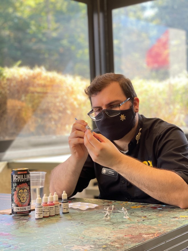 Putting on unique and interesting experiences helps us build community. We’ve noticed that most of our customers start their journey with us during an event, then come back time and time again. Paint & Sip is an event we put together to bring in new people to the hobby of painting miniatures in a fun and relaxing environment.