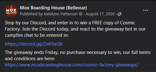 Create a Discord community for each of our stores. This would give us the ability to reach our core audience, and give the community a place to gather virtually. We could also run virtual events to try and give people a small escape during a rough time.